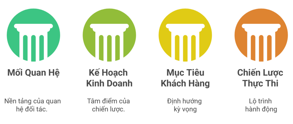 Một chiến lược quản trị khách hàng bền vững luôn được xây dựng dựa trên bốn trụ cột then chốt dưới đây.