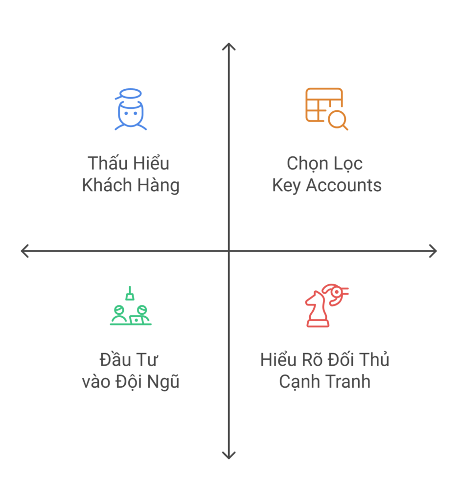 - Tiêu chí chặt chẽ: Xây dựng bộ tiêu chuẩn khắt khe để xác định Key Account. Đây là cốt lõi của chiến lược và cần được rà soát kỹ lưỡng bởi các cấp lãnh đạo cao nhất.